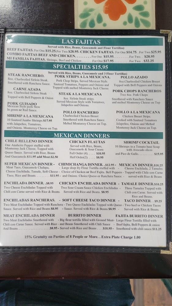 Mi Familia's menu is diverse and caters to various preferences. Starters like nachos and cheese dips set the tone. For mains, enchiladas, tacos, and burritos shine, featuring various proteins and flavors. The Taco Salad is fresh and substantial. Daily lunch specials provide great value, with choices like Chicken Enchiladas and Carne Guisada. Sides like guacamole and beans complement any meal. Beverages range from soft drinks to domestic and Mexican beers, rounding out an enjoyable dining experience. Each plate showcases the essence of traditional Mexican cooking, prepared with care and attention.